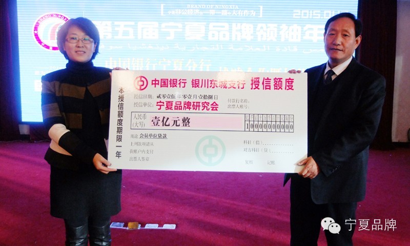 在1月18日举办的“第五届宁夏品牌领袖年会”上,宁夏品牌研究会与中国邮政储蓄银行银川分行达成“金融合作伙伴”。与中国银行宁夏分行达成“战略发展合作伙伴”,同时,中国银行银川东城支行向宁夏品牌研究会授信1亿元用于会员企业信用贷款。会上,研究会还与石嘴山银行正式签署“信用联盟”贷款合作协议。